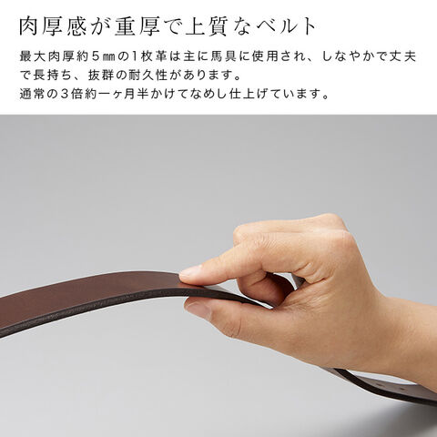 日本を代表する栃木レザーの中でも、馬具などに用いられるほど頑丈な最大5mm厚の一枚革を贅沢に使用しました。