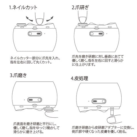 【備考】・爪や指先に疾患のある方等は使用不可。 ・お子様のみでの使用禁止。 ・足の爪、皮への使用には、爪や皮膚の厚みや形によって個人差がありますので、予めご了承ください。