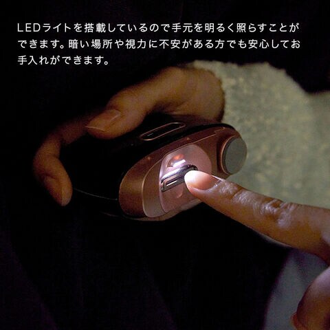 【仕様】[機能]LEDライト、5分間で自動オフ [カッター回転速度]弱:7020rpm、強:8000rpm [アダプター回転速度]弱:6750rpm、強:7500rpm [騒音レベル]弱:42dB、強:48dB(メーカー調べ) [連続使用時間]最大4時間 [充電時間]最大2時間 [電池容量]500mA [充電電圧/電流]5V/400mA