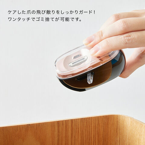 ●削った爪や削りカスはダストボックスに収集、ワンタッチで捨てられる