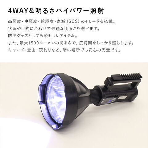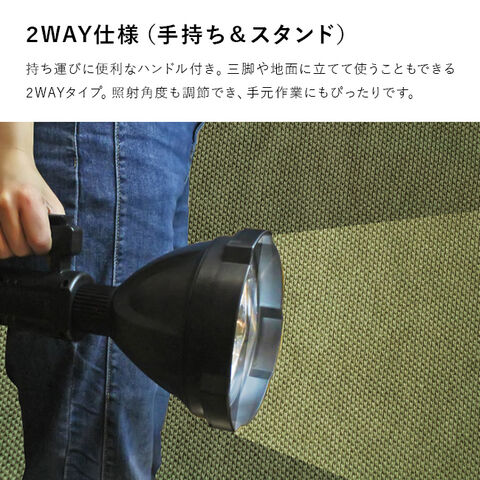 高・中・低・SOSの4段階点灯に対応。手持ちでもスタンドでも使える2WAYタイプ。