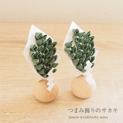 枯れない榊 造花 2個セット 日本製 神棚 榊立て ミニ 榊 つまみ細工 フェイク かわいい 木製 モダン神棚 小さい 木 モダン おしゃれ インテリア 枯れない 水やり不要 神具 パーツ