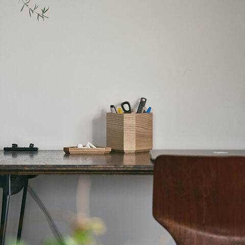 ■ 三角形の木製つつ 小物収納に便利