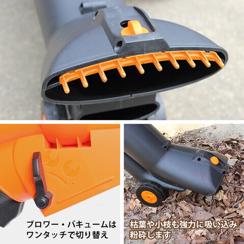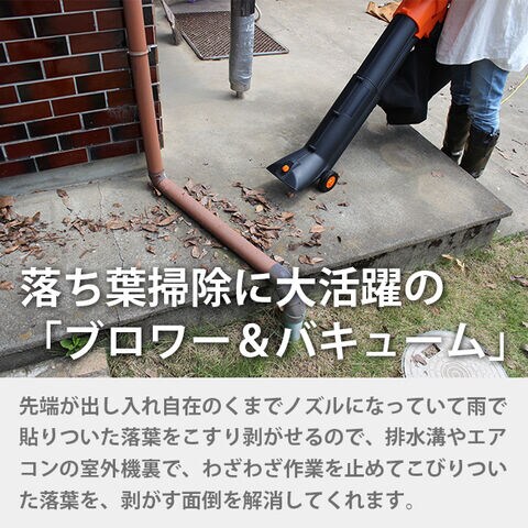 掻いて、吹き集めて、吸って、粉砕してくれる、1台4役をこなすブロワー&バキューム。