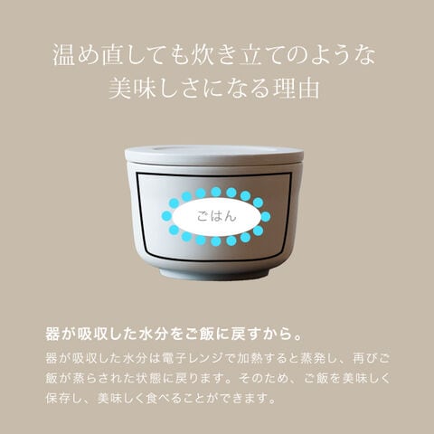 レンジ対応だから、朝炊いたごはんを夜に温め直しても、ふっくらしたまま。