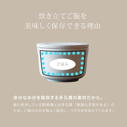 炊きたてのごはんを「少しだけ」1膳分美味しく保存したい時の陶製おひつです。