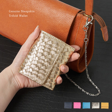 小さくても収納力抜群!ふんわりとしたシープスキンの柔らかさと、美しい手編みメッシュ仕上げが魅力の三つ折り財布。バッグの中でもかさばらず、手にすっと収まるサイズ感が人気の秘密。
