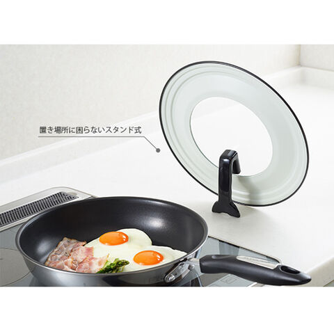 更に、調理中便利なスタンド式で、フタを立てておく際に蓋のつまみ部分が支えとなります。これで、蓋を寝かせて置くスペースを確保する必要がありません。26~30cmサイズのフライパンや鍋にご使用頂けます。