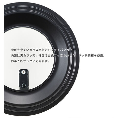 中の食材の様子が見えるので、なるべく蓋を開けずに調理したい時におすすめです。内面は黒色フッ素、外面は白色フッ素を施した両面フッ素加工済みですので、汚れがつきにくく、お手入れも簡単。
