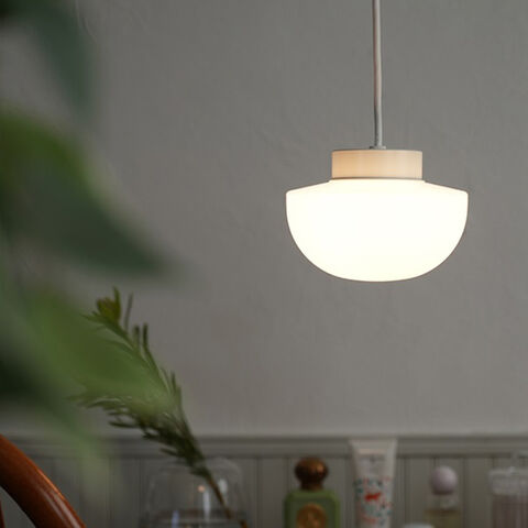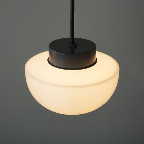 クラシカルな雰囲気とモダンなエッセンスを兼ね備えた照明です。厚みのある乳白ガラスが光をやさしく広げ、柔らかな明かりが空間を包みます。