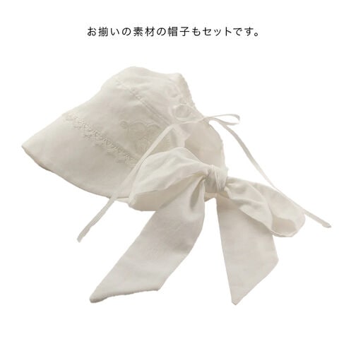・ぼうしとスタイはおそろいのレース仕立てで統一感のある仕上がり。