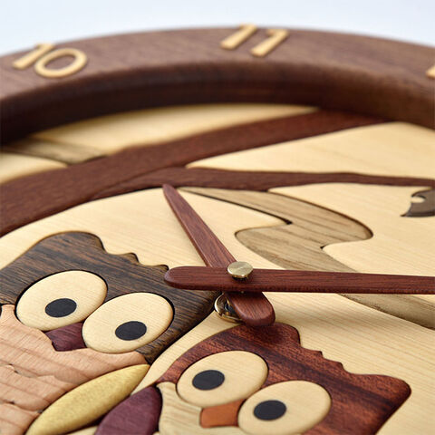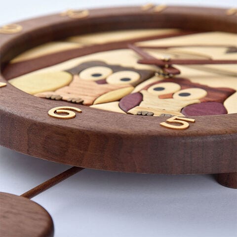 1-2W 寄せ木 振り子時計 ふくろうペア(フクロウ 時計 掛時計 ウォールクロック 壁掛け時計 振り子 掛け時計 おしゃれ)