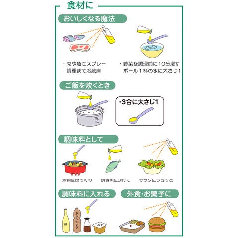 飲物・食事・調理に混ぜたり、その他、パーソナルケア・ペット・植物にもおすすめです。