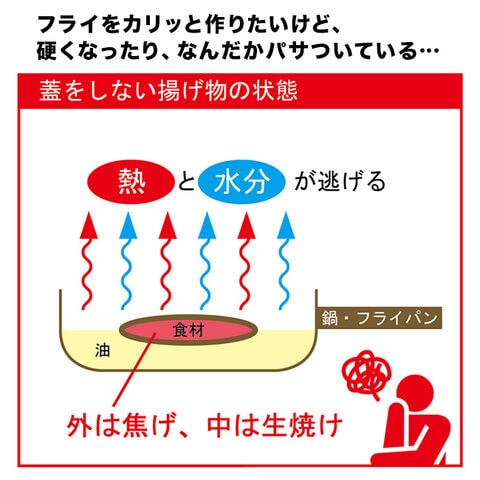 揚げ物の常識を変える、蒸し揚げるガラス蓋。