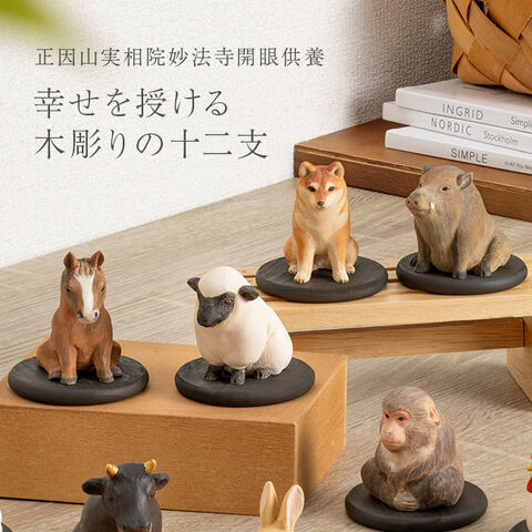 干支 置物 木製 かわいい 木彫りの動物 人形 干支飾り 干支の置物 祈祷済み 縁起物 正月飾り 玄関 リビング 床の間 インテリア 木 工芸品 おしゃれ