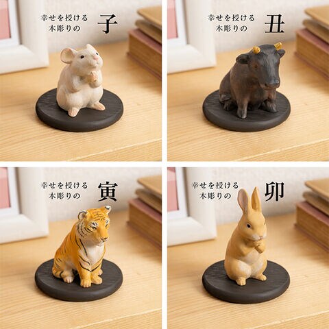 日本人にとって馴染み深い十二支を、現代のライフスタイルに溶け込む愛らしい木彫り像として再現したのが、この「幸せを授ける十二支木彫りコレクション」です。