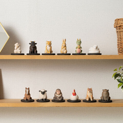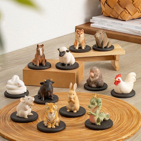 【サイズ・重量(約)】[子]高さ50×幅35×奥行53mm・16g [丑]高さ60×幅40×奥行67mm・27g [寅]高さ61×幅36×奥行52mm・17g [卯]高さ70×幅32×奥行37mm・12g [辰]高さ69×幅32×奥行63mm・15g [巳]高さ41×幅52×奥行53mm・30g [午]高さ61×幅39×奥行52mm・15g [未]高さ54×幅39×奥行57mm・22g [申]高さ54×幅48×奥行46mm・22g [酉]高さ51×幅42×奥行67mm・23g [戌]高さ60×幅32×奥行57mm・20g [亥]高さ55×幅42×奥行71mm・24g [台座]高さ8×幅69×奥行69mm・11g