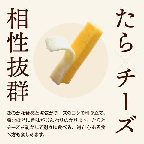 たらとチーズを剥がして別々に食べる、遊び心ある食べ方も楽しめます。