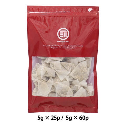 | 栄養成分表示 | (製品100g当たり)エネルギー:387kcal たんぱく質:8.3g 脂質:3.2g 炭水化物:81.3g 食塩相当量:0.1g (推定値) (抽出液100g当たり)エネルギー:0kcal たんぱく質:0g 脂質:0g 炭水化物:0g 食塩相当量:0g (推定値) 本品1袋を1Lのお湯に入れ20分抽出した後の数値です。 |