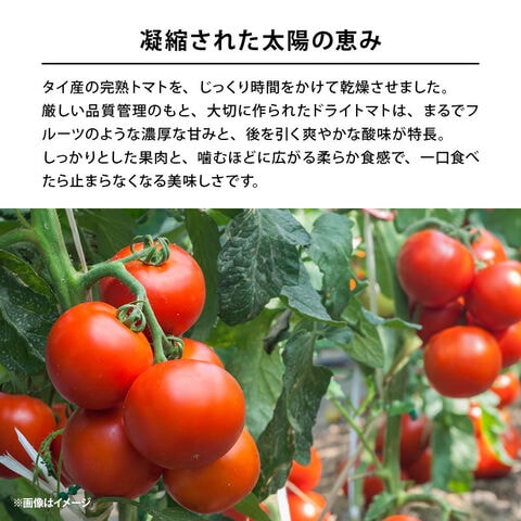 タイ産の完熟トマトを、じっくり時間をかけて乾燥させました。