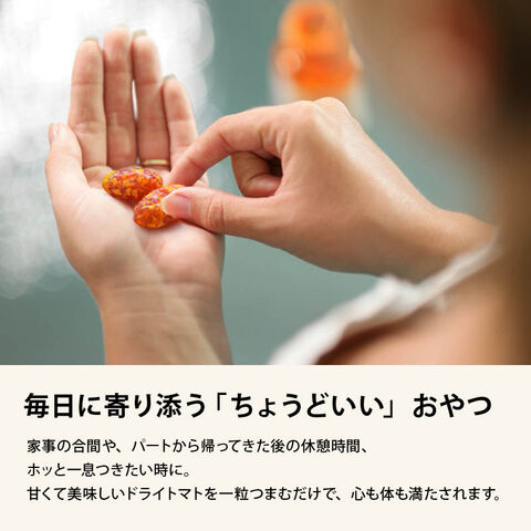 甘くて美味しいドライトマトを一粒つまむだけで、心も体も満たされます。