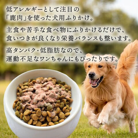 前田家 ワンダフード 国産 低アレルギー エゾ鹿 ふりかけ パウダー トッピング 粉 偏食対策 味変 薬にかけて 全犬種 全年齢 北海道 ジビエ 鹿肉 ドッグフード 着色料無添加 高タンパク 低脂肪 低カロリー EPA α-リノレン酸 小型犬 中型犬 大型犬 ヘルシー