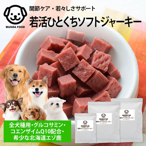 前田家 ワンダフード 国産 低アレルギー 関節ケア 活力 美容 エゾ鹿 一口 ソフト ジャーキー 北海道産 ジビエ 鹿肉 ドッグフード 高タンパク 低脂肪 低カロリー グルコサミン コエンザイムQ10 EPA α-リノレン酸 全年齢 小型犬 中型犬 大型犬
