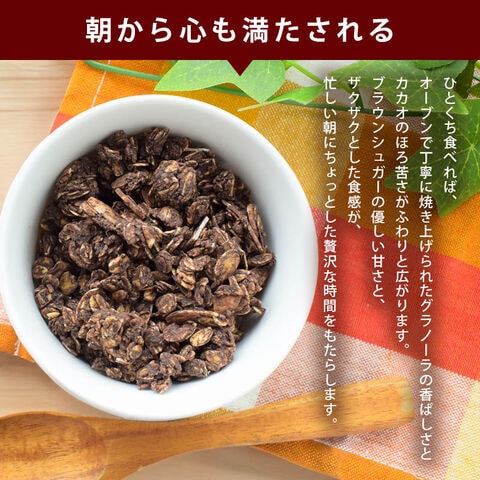 | 原材料 | オーツ麦(オーストラリア)、ブラウンシュガー、ココアパウダー、アーモンド、ココナッツ、麦芽エキス、シナモンパウダー、食塩/酸化防止剤(ビタミンE) |