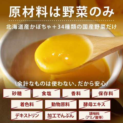 北海道産のかぼちゃに、34種類の国産野菜をバランス良くブレンド。