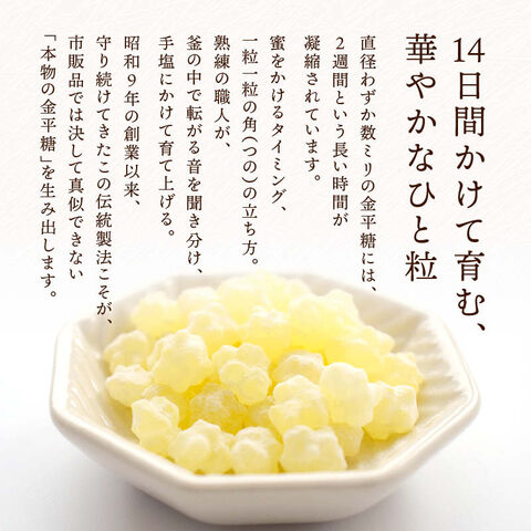 直径わずか数ミリの金平糖には、2週間という長い時間が凝縮されています。