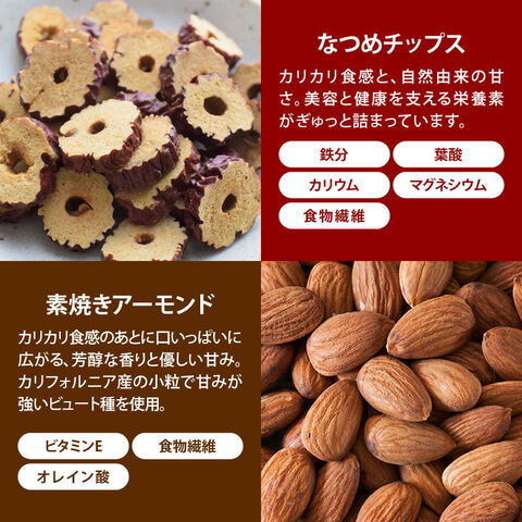 | 原材料 | アーモンド(アメリカ)、くるみ、カシューナッツ、なつめ(一部に、くるみ・アーモンド・カシューナッツを含む) |