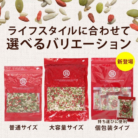 美味しさも栄養もプレミアムミックスシード。無塩、無油、無着色、自然派ナチュラルフード 20gずつの食べきりサイズも新登場! |