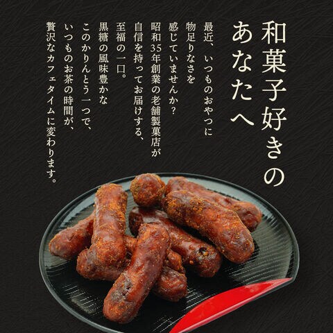 黒糖の風味豊かなこのかりんとう一つで、いつものお茶の時間が、贅沢なカフェタイムに変わります。