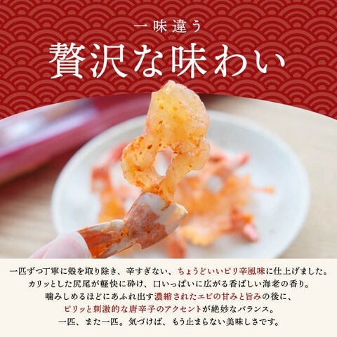 前田家 ピリ辛 焼き海老 50g 唐辛子風味 殻無し 贅沢おつまみ えび鉄 エビ 海老 焼きえび まるごと おつまみ つまみ 肴 ビール ワイン ハイボール 日本酒 晩酌 飲み 家飲み メール便 送料無料 MAEDAYA