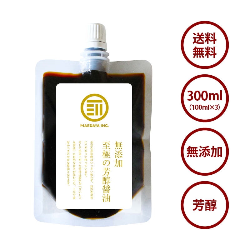 前田家 無添加 至極の芳醇醤油 計300ml 100ml×3 国産 原料のみ使用 しょうゆ 国産丸大豆 国産小麦 国産米 天日塩 再仕込み醤油 化学調味料不使用 調味料