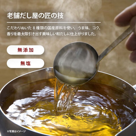 | 原材料 | かつおのかれぶし(国内製造・枕崎産)、かつおのふし(枕崎産)、まぐろのふし(枕崎産)、焼きあご(長崎県産)、煮干し(千葉県産)、昆布(北海道産)、原木しいたけ(大分県・熊本県・宮崎県・愛媛県・島根県産)、ほたて貝(青森県産) |