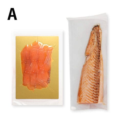| 原材料 | 【ポーションカット・ショートロイン・輪切りステーキ・土佐造り】アトランティックサーモン(養殖) 【スモークスライス】アトランティックサーモン(養殖)、砂糖、塩 |
