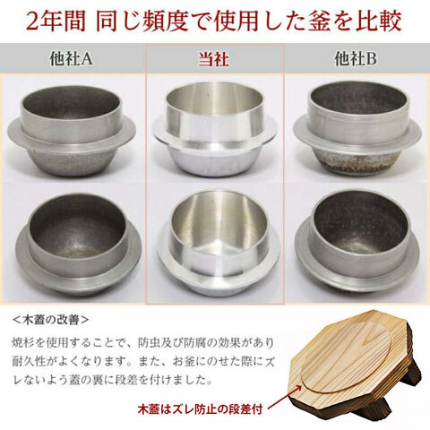 〈釜・火皿〉アルミ合金、〈木蓋・木台〉杉・表面焼加工、