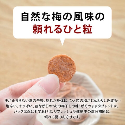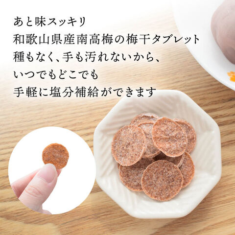 あと味スッキリ 和歌山県産南高梅の梅干タブレット 種もなく、手も汚れないから、いつでもどこでも手軽に塩分補給ができます |