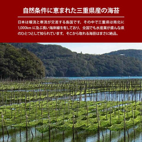 国産(三重県産)の香り豊かな天然海苔。そのままでも、料理に加えても美味しいです。