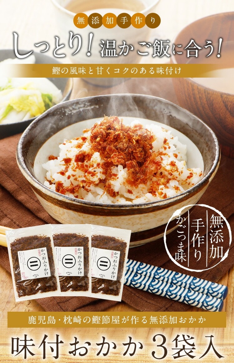 鰹節屋の味付おかか 80g×3袋 ふりかけ 送料無料 無添加 鰹節 ごはんのお供 鹿児島 枕崎 ポイント消化 食品 お土産 ギフト 国産 人気には 訳あり [メール便]