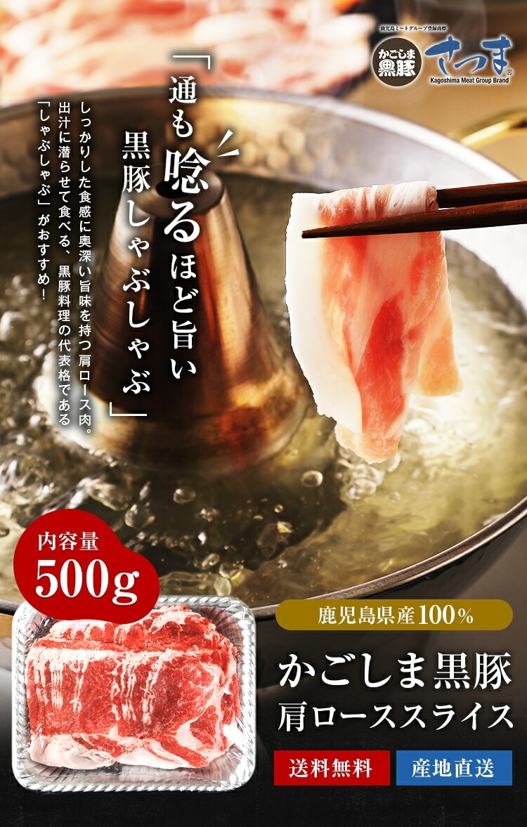 かごしま黒豚 肩ローススライス 500g ギフト 鹿児島県産 国産 送料無料 豚肉 しゃぶしゃぶ ロース 贈り物 お取り寄せ 高級 グルメ 土産 特産品 旨さに訳あり ひと手間 鹿児島 黒豚 焼肉 冷凍 小分け 薄切り 御祝 [産直]