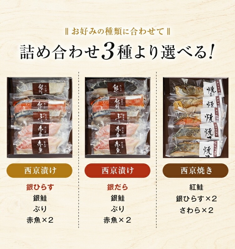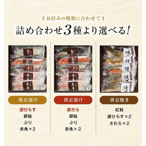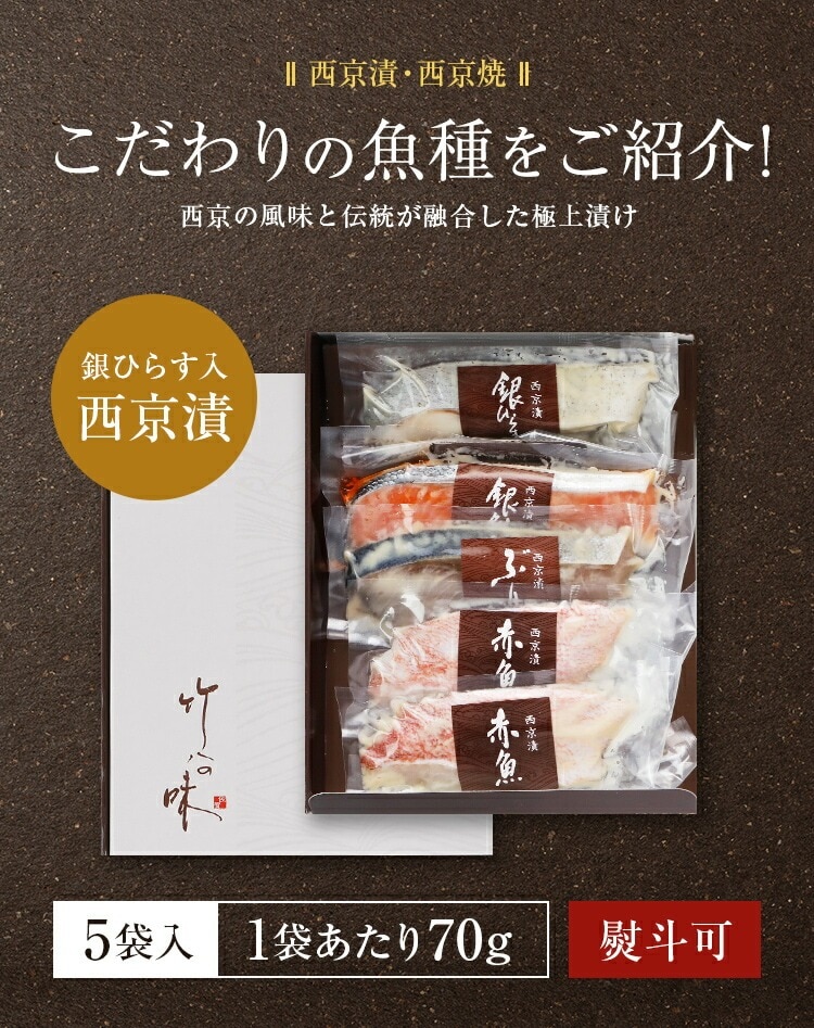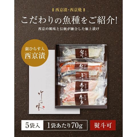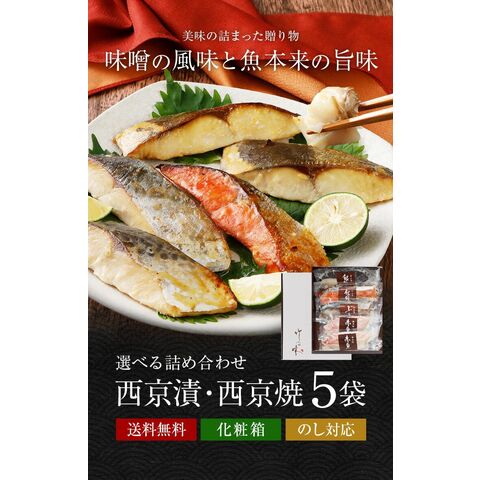 西京漬け 西京焼き 選べる 5切セット ギフト 詰め合わせ 送料無料 竹八 味噌漬け 西京味噌 売れ筋 魚 銀だら 銀ひらす 銀鮭 お土産 お返し 女性 祝い 海鮮 お取り寄せグルメ 高級 贈答用 食品 プレゼント 京都 サーモン おつまみ 大容量 熨斗 父の日 [産直]