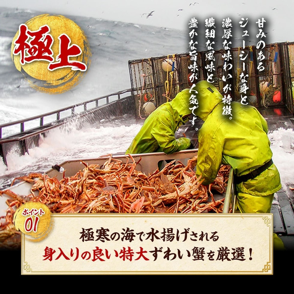 | ≪解凍方法≫ 食べる分だけ冷凍庫から出してボールに入れます。直接、流水をあてて、カニ表面の氷の膜を洗い落してください。カニの芯は凍っていてOKです。表面の氷の膜がとけたらキッチンペーパーで水気を取り、お皿の上にのせて1時間ほどで解凍してください。 ※水の中で完全解凍すると、カニの旨みが抜けて水っぽくなるのでご注意下さい。 ≪お召し上がり方≫ 絶妙の塩加減でボイルしてありますので、まずはそのままお召し上がりください。お好みで三杯酢やポン酢を付けても美味しいです。 |