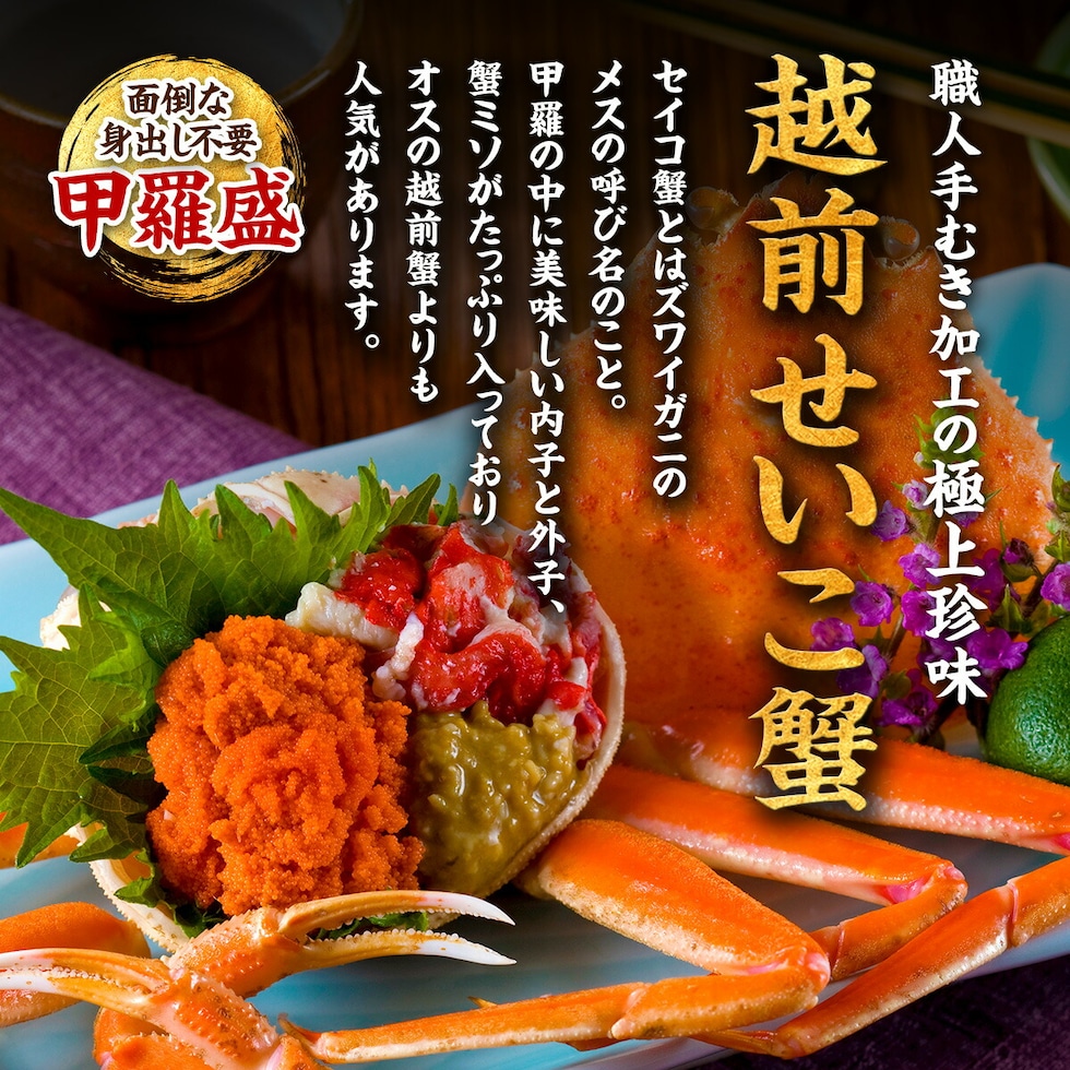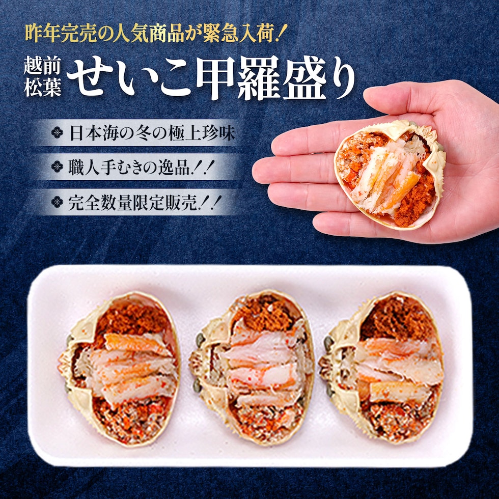 越前/松葉せいこがに甲羅盛り 小サイズ×3個 セイコガニ 越前 松葉 せいこがに せいこ蟹 せいこ こっぺ コッペ セイコ蟹 ほぐし身 カニ味噌 正月 年末年始 お歳暮