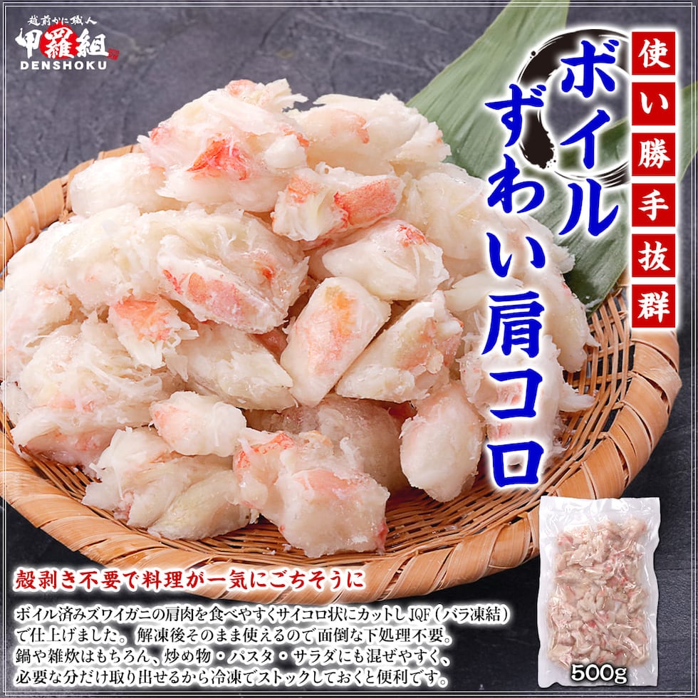 ボイルずわい肩コロ 500g 冷凍 ボイル ずわいがに カニ かに 肩肉 ほぐし身 むき身 IQF バラ凍結 海鮮 蟹鍋 かに鍋 カニしゃぶ しゃぶしゃぶ かに雑炊 炒め物 チャーハン パスタ サラダ 便利 時短 業務用 家庭用 お取り寄せ