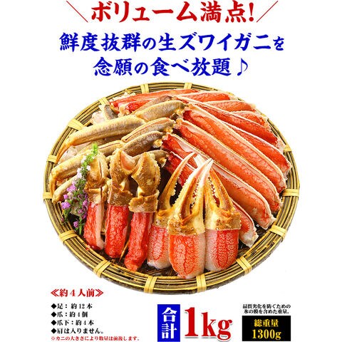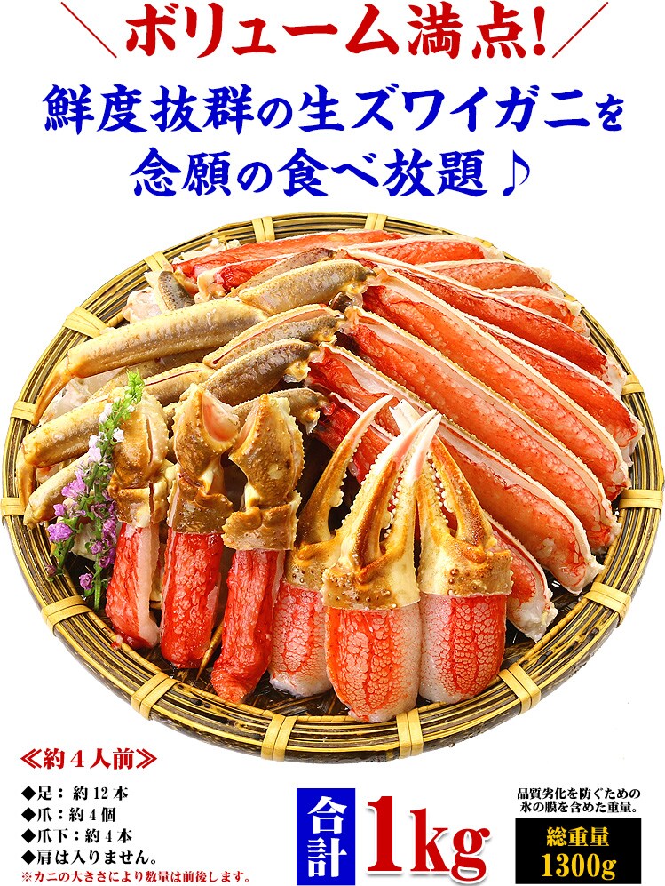 カニ かに 蟹 超特大&超極太4L~5Lポーション!肩肉なしカット生ずわい蟹2kg(総重量2.6kg) お刺身OK 生ずわい蟹 プレミアム 太脚 ポーション カニ刺し カニ鍋 お中元 贈呈用 海鮮 年末年始 お歳暮 正月