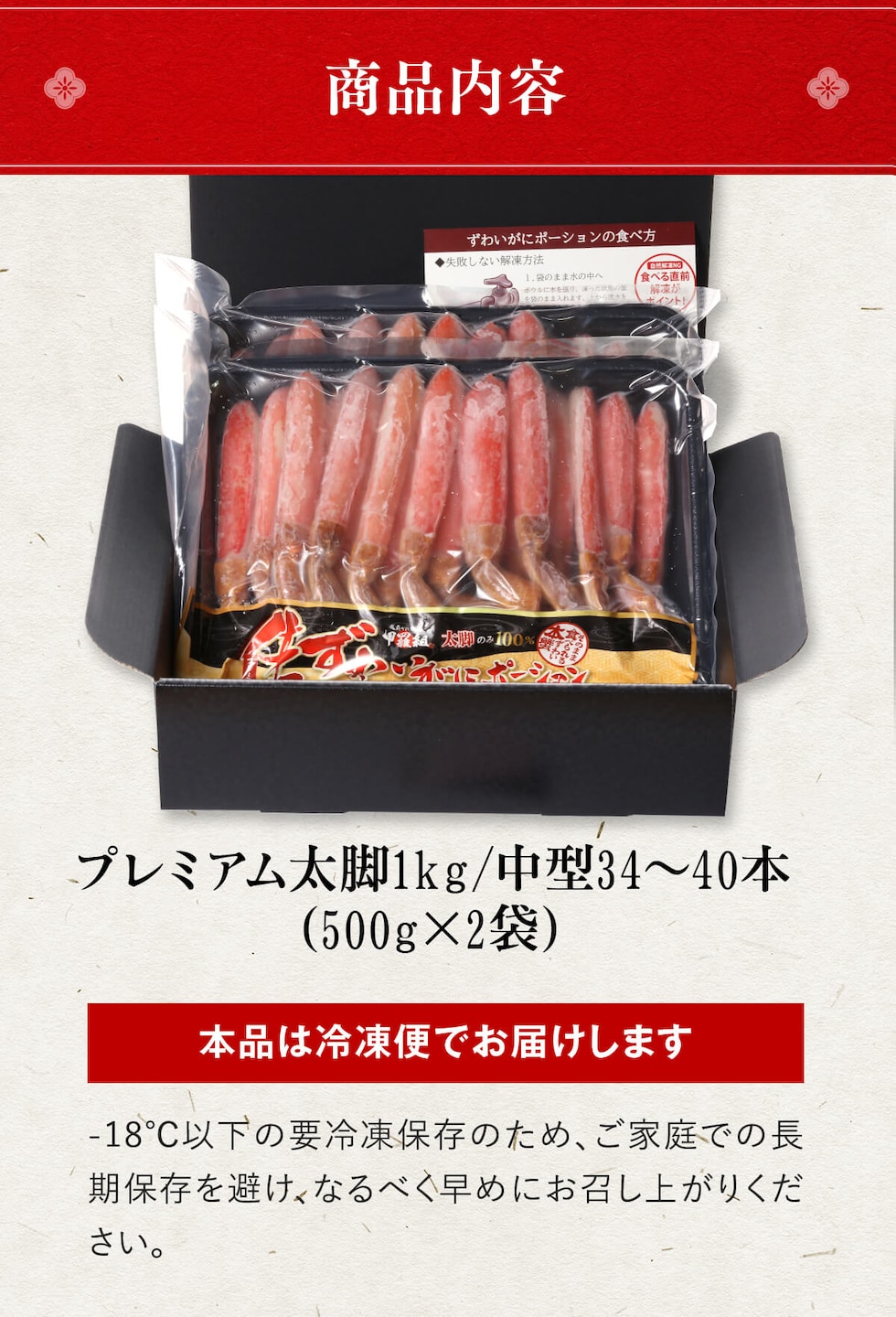 生ずわいがに太脚ポーション1kg/中型34~40本(500g×2袋) |