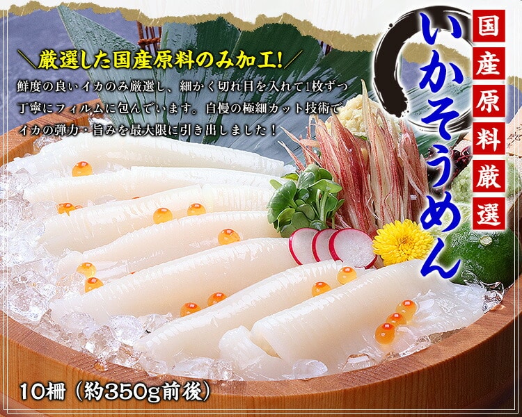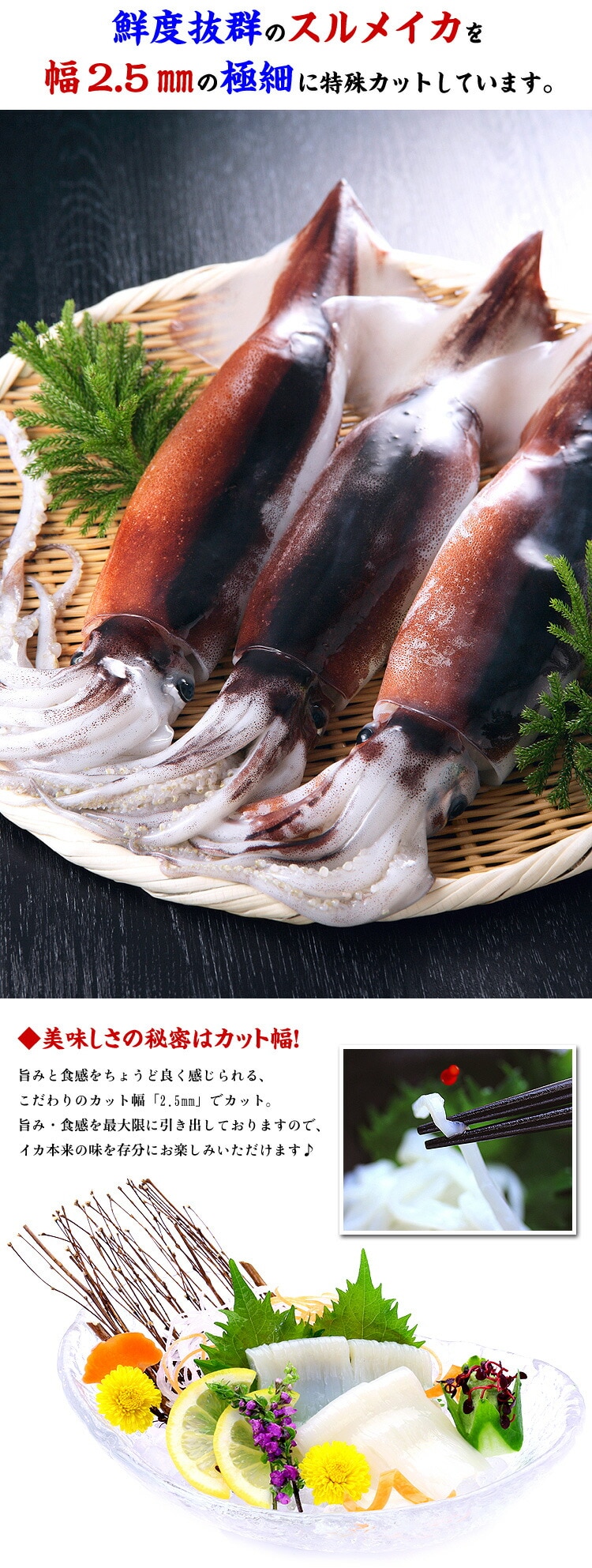 国産スルメイカ使用! 極細いかそうめん10柵(約350g前後)スルメイカ 細造り イカソーメン 刺身 いかそうめん 冷凍食品 年末年始