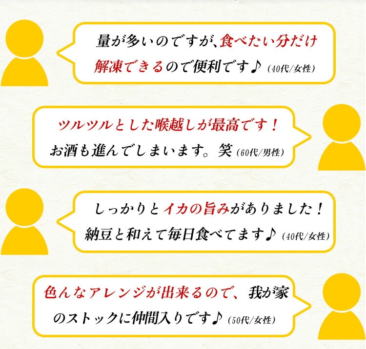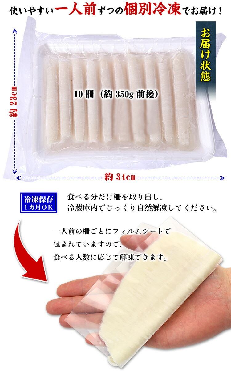 食べる分だけ袋から取り出し、自然解凍でお召し上がりください。 |